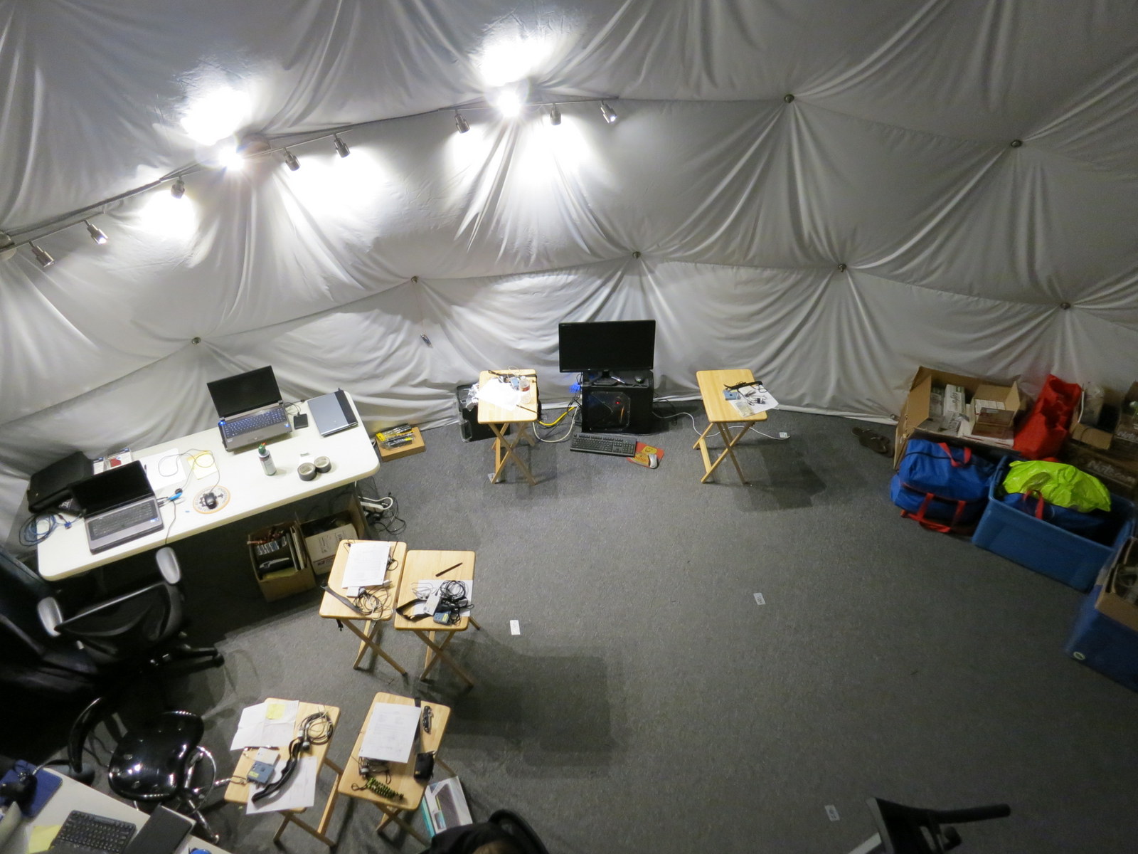 The habitat is 36′ in diameter and about 20′ tall. The habitat seams generally well laid out, about half the square footage is in the form of a large multi-use room with full 20′ ceilings so it doesn’t feel claustrophobic or anything (yet anyway).