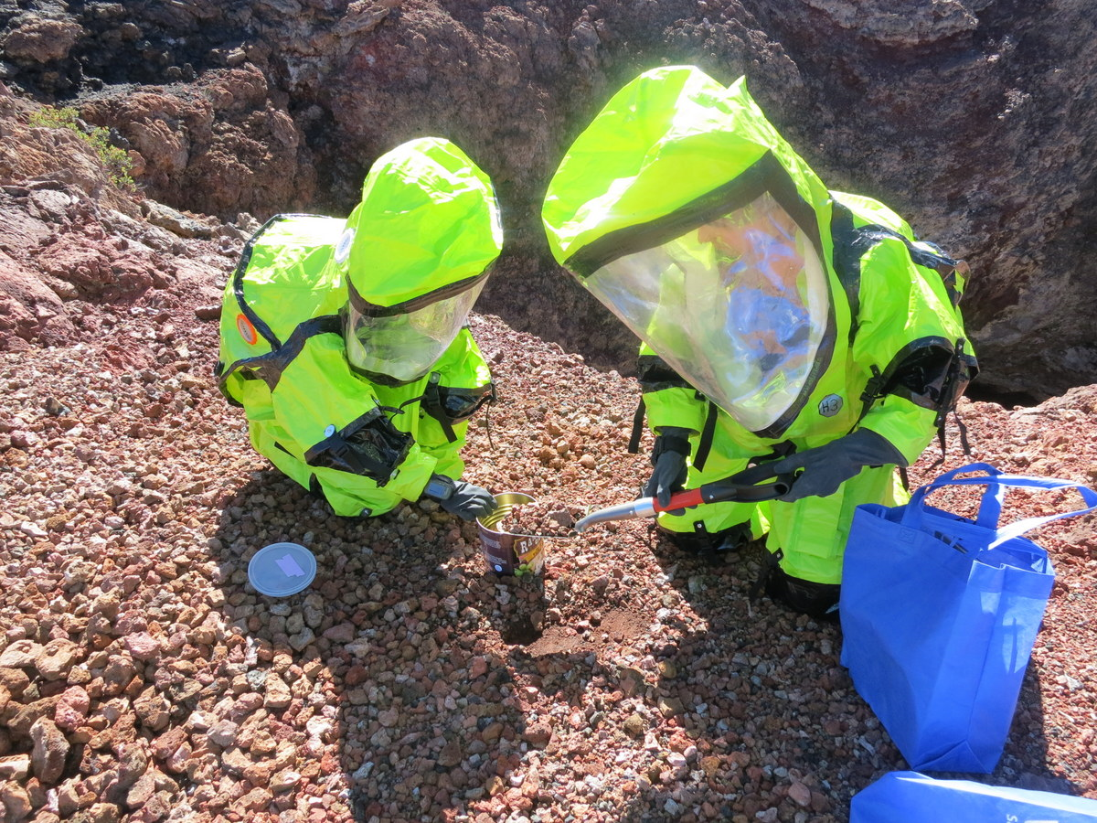 Today I got to do my first geology EVA. We are being assigned occasional geology tasks just like a real crew on Mars would be, the idea being to keep the simulation as realistic as possible and also to keep us busy. The task was to take some rock samples we can use to determine the approximate mass of the rampart spatter cone (a type of volcanic cone/ridge) adjacent to the habitat. Our previous geology task had been to determine the approximate volume of the feature.